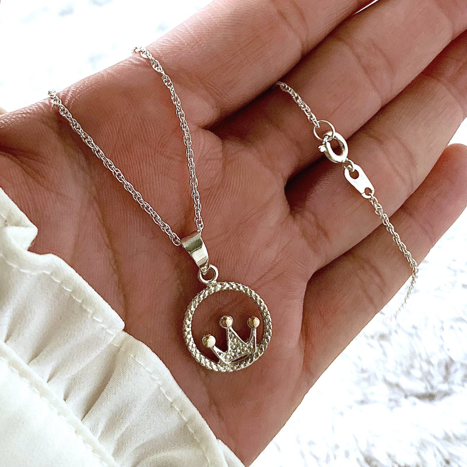 Conjunto cadena tourbillon 25 con dije corona tres puntas de Plata y Oro