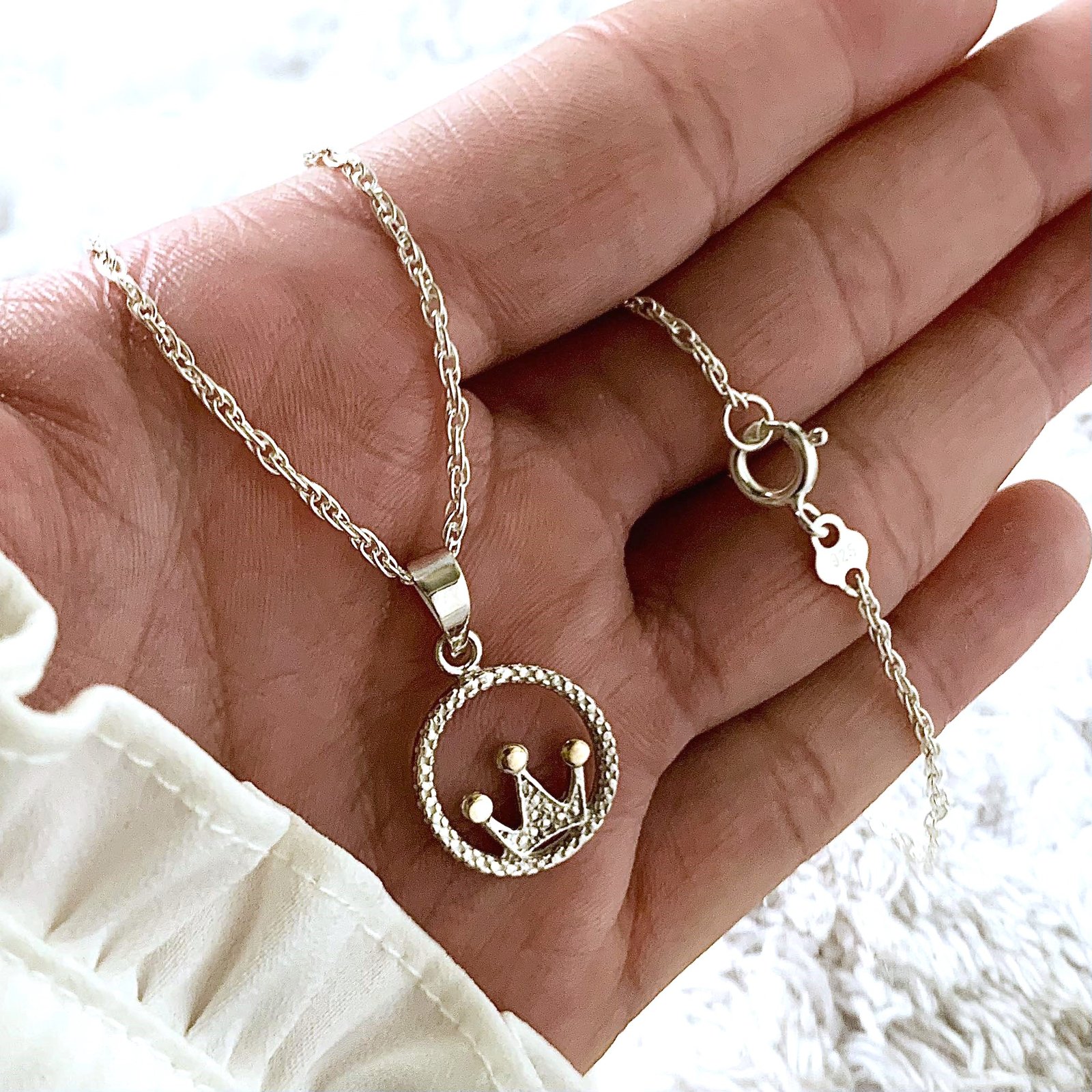 Conjunto cadena tourbillon 35 con dije corona tres puntas de Plata y Oro