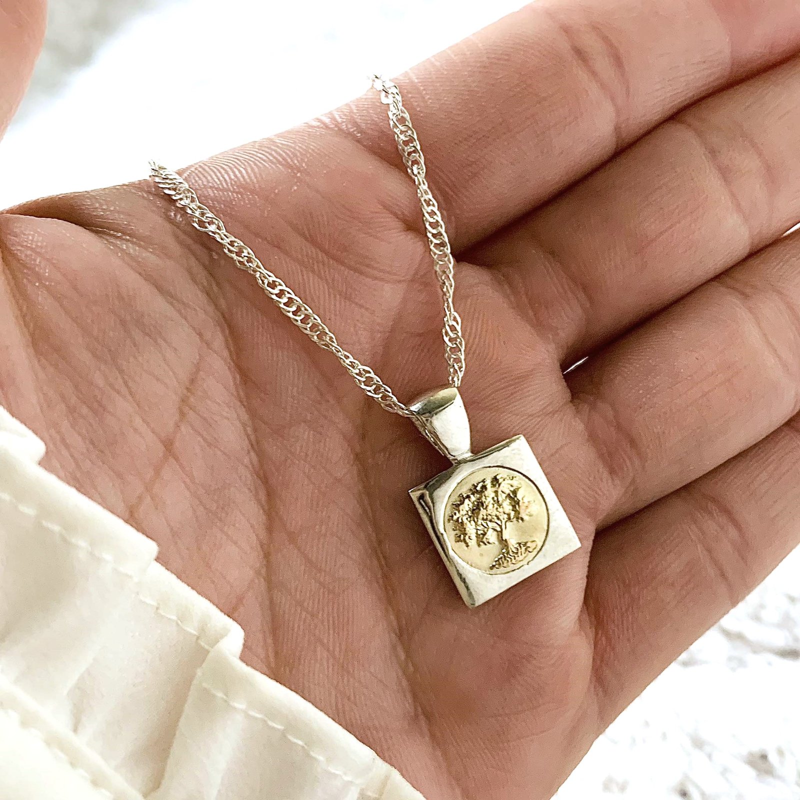 Conjunto cadena singapur 30 con dije Arbol cuadrado de Plata y Oro