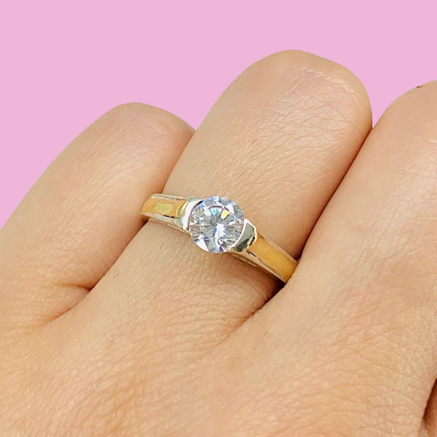 Anillo Solitario Cubic blanco Plata y Oro