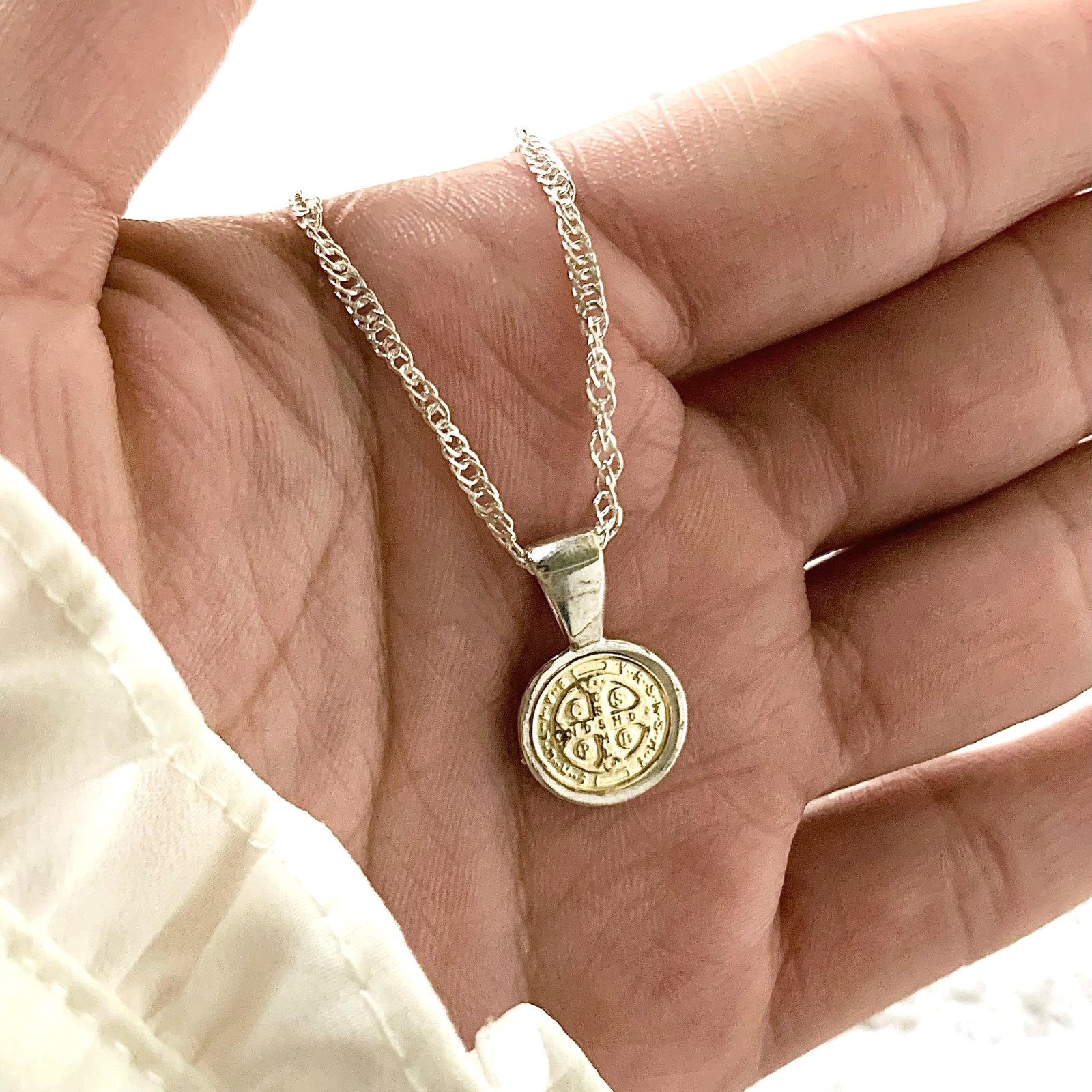 Conjunto Singapur 30 y Dije San Benito redondo de Plata y Oro
