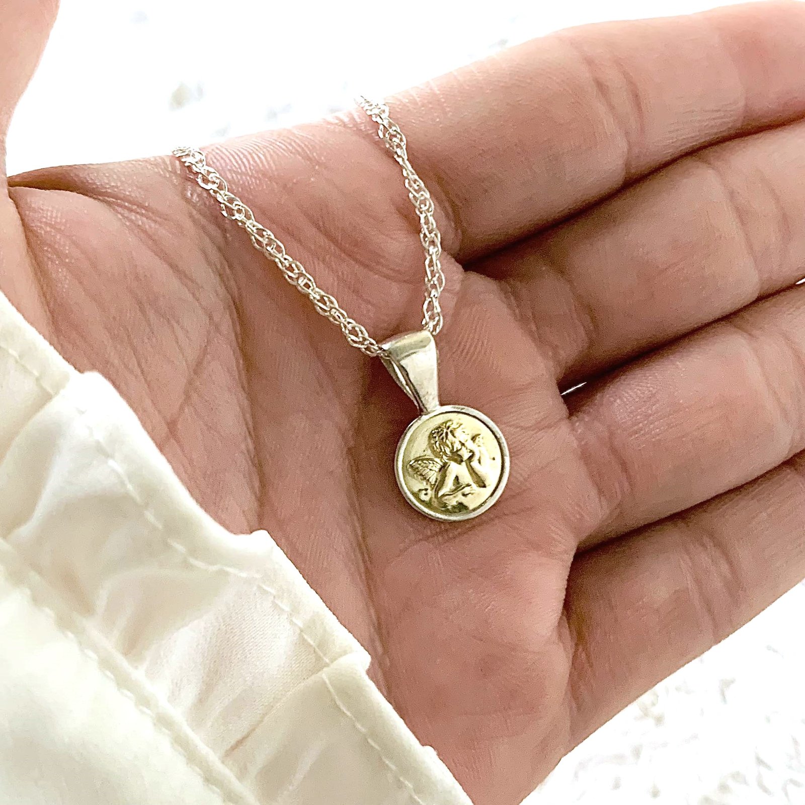 Conjunto Singapur 30 y Dije Angel de la Guarda redondo de Plata y Oro