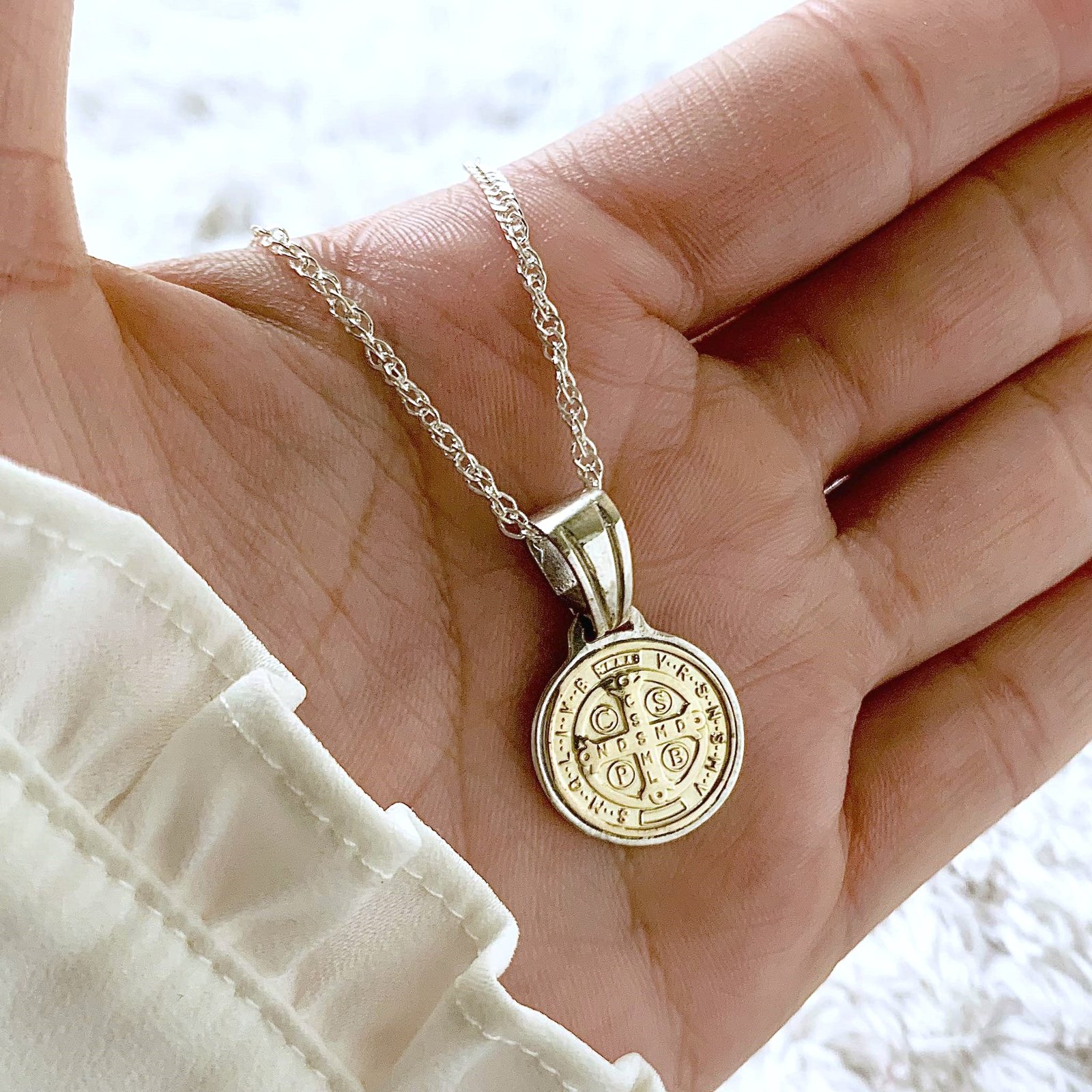Conjunto Singapur 30 y Dije Grande San Benito Redondo de Plata y Oro