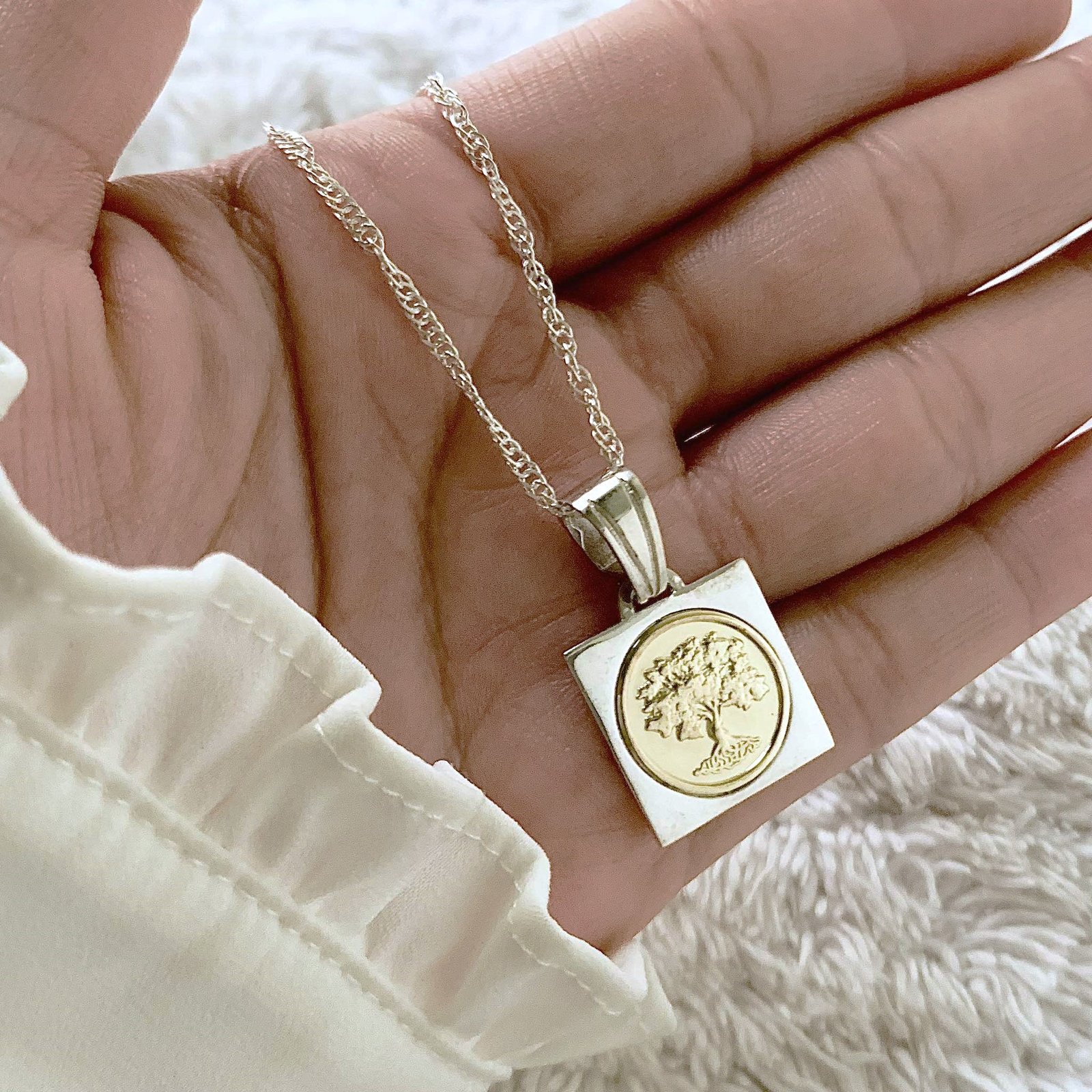 Conjunto Singapur 30 y Dije Arbol de la Vida Cuadrado de Plata y Oro