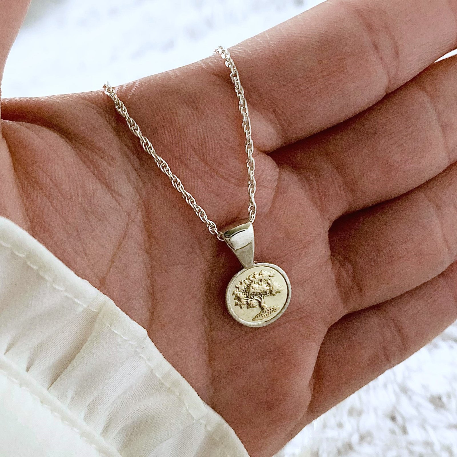 Conjunto tourbillon 25 y Dije chico Arbol de la vida redondo de Plata y Oro