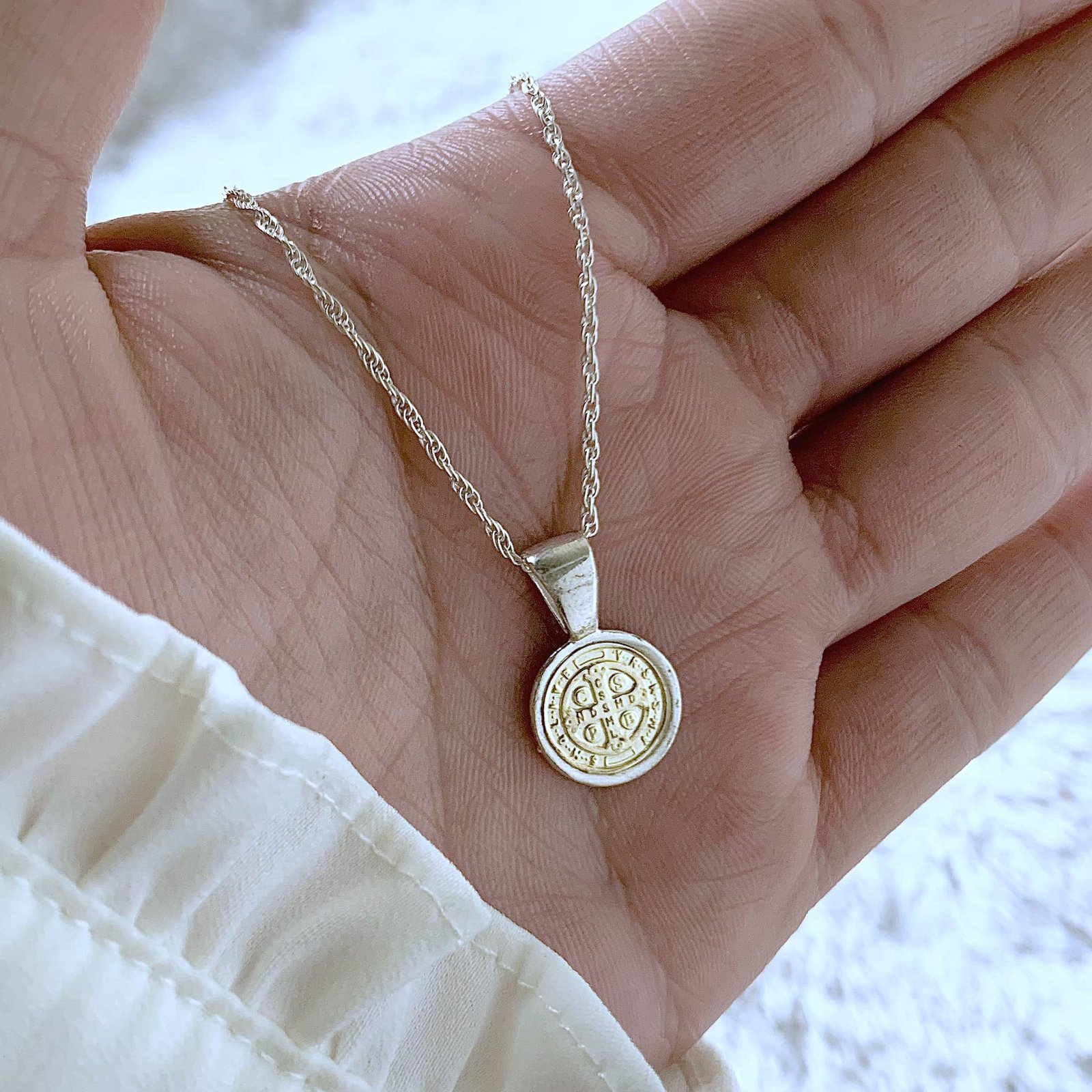 Conjunto tourbillon 25 y Dije chico San benito redondo de Plata y Oro