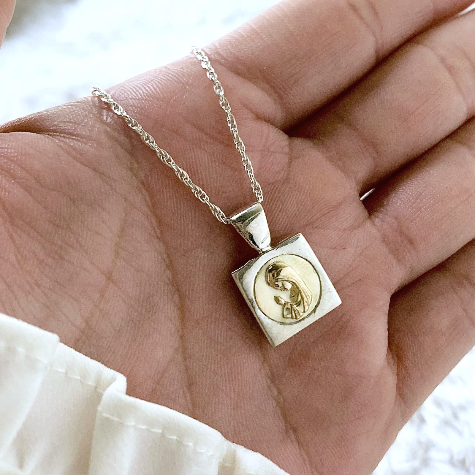 Conjunto tourbillon 25 y Dije chico Virgen Nena cuadrado de Plata y Oro