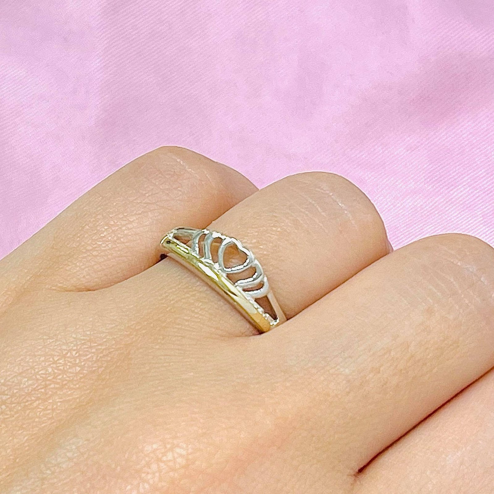 Anillo tiara corona con corazon pequeño Plata y Oro