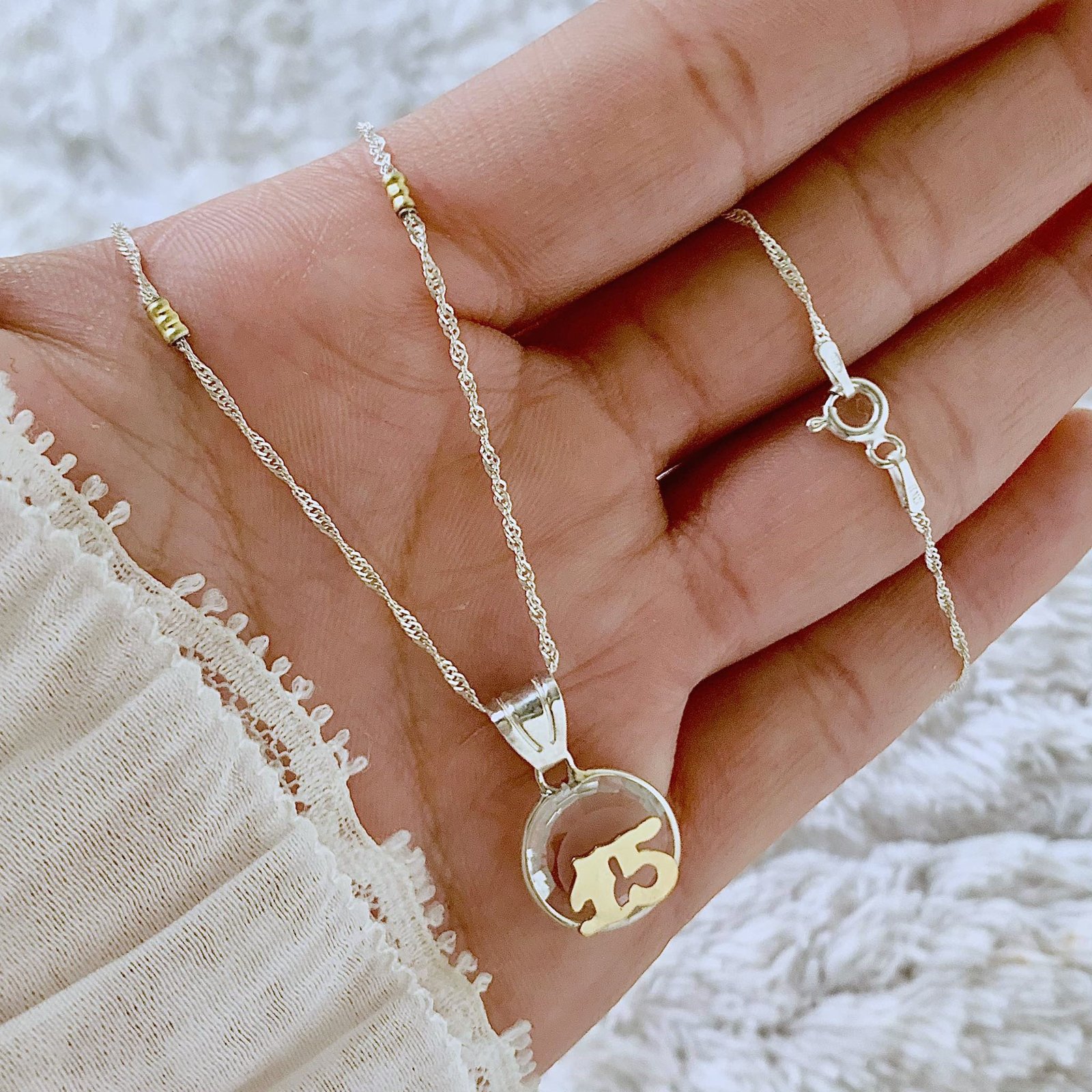 Conjunto Singapur apliques de oro y dije cristal redondo 15 años de Plata y Oro