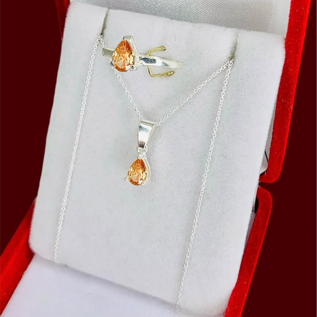 Artículo: KIT 103-3Conjunto Rolito Fino dije y anillo gota mediano Ambar