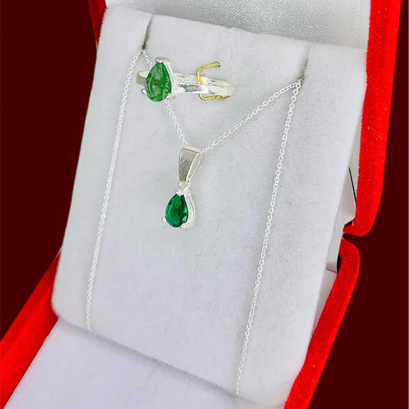 Conjunto Rolito Fino dije y anillo gota mediano Verde de Plata 925