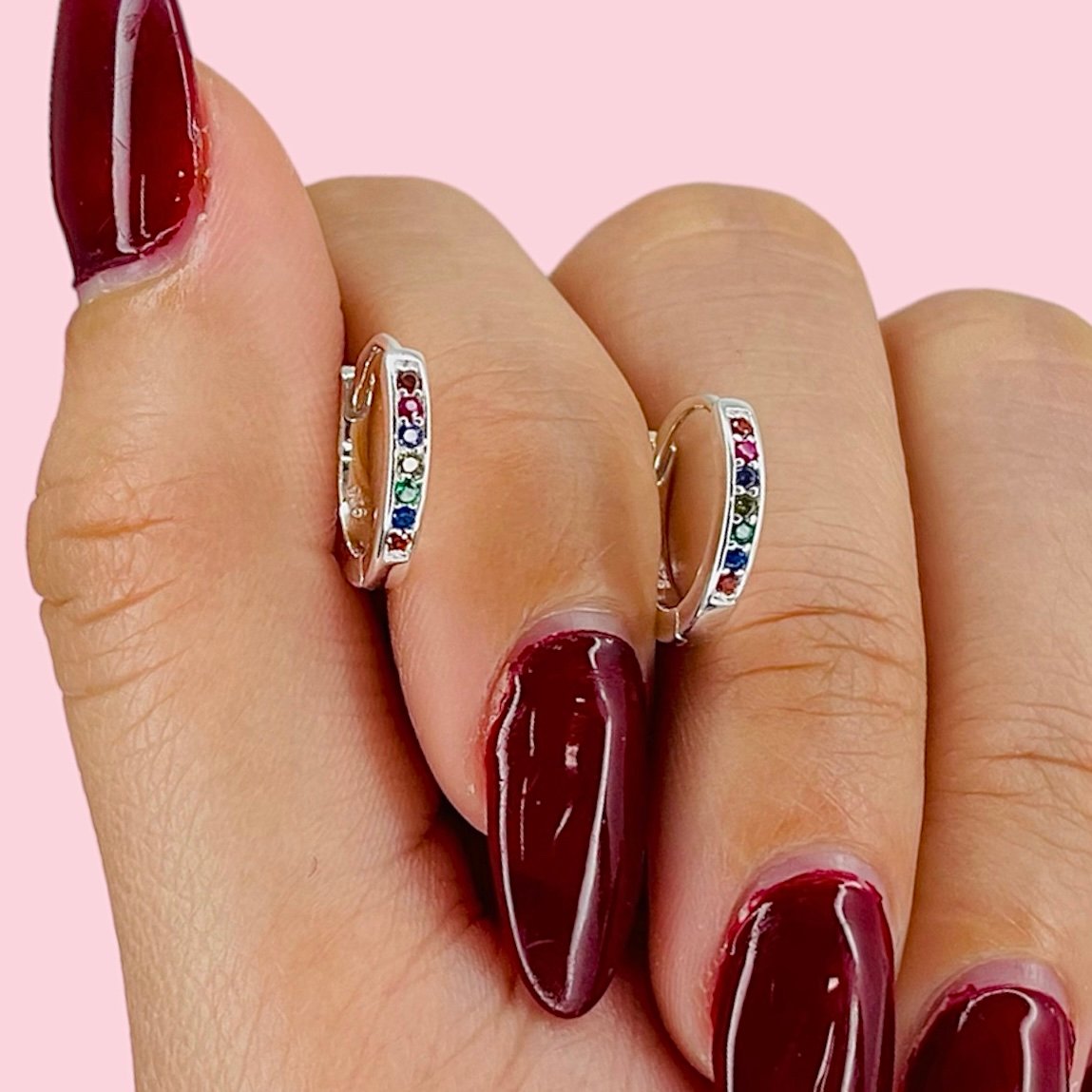 Argolla Huggies con piedras multicolor de Plata 925