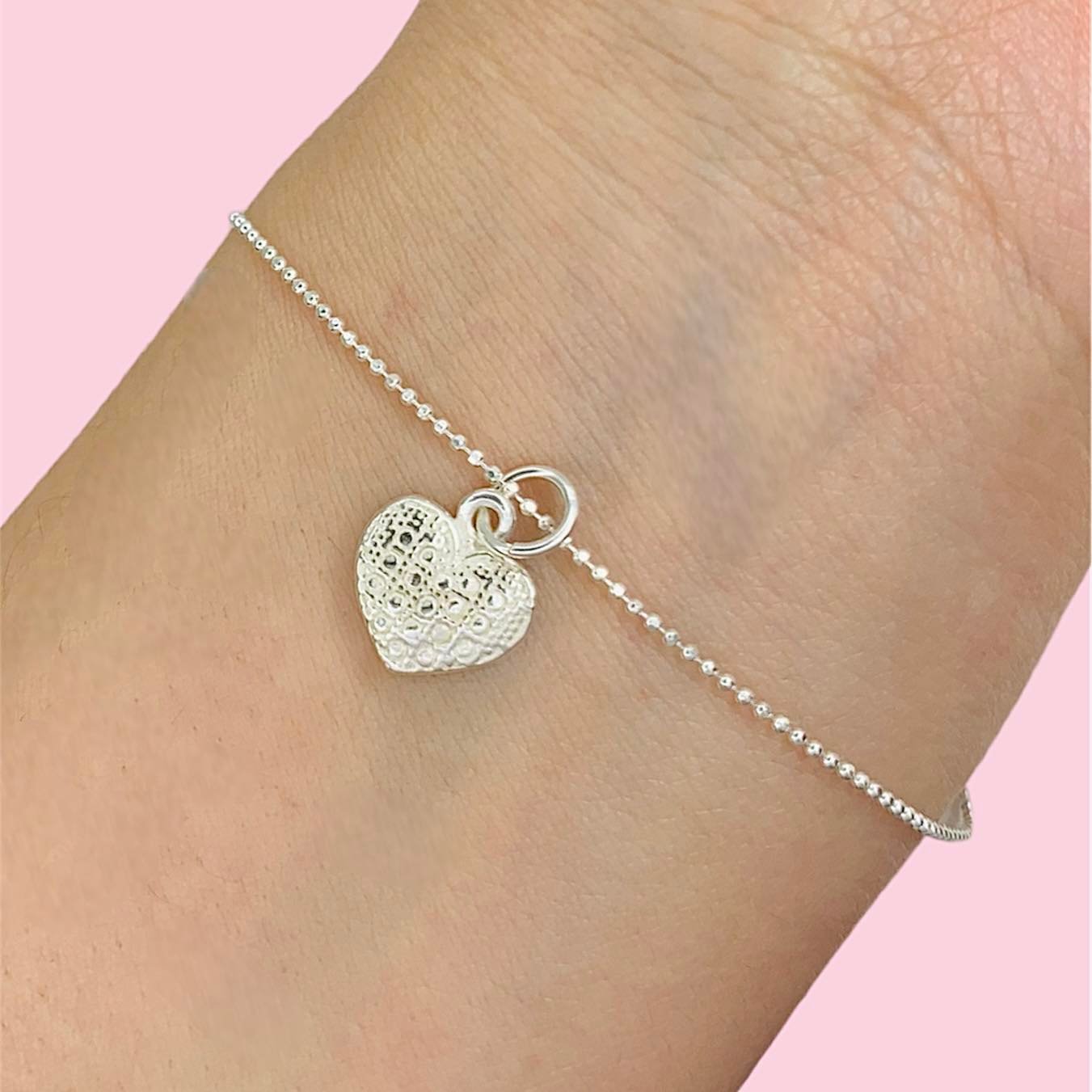 Pulsera Bolitas con dije corazoncito de Plata 925
