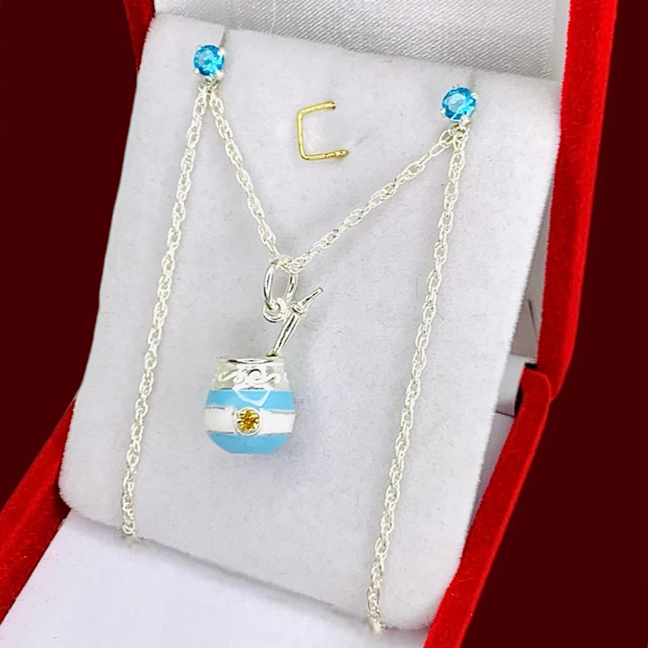 Conjunto Cadena Tourbillon 35 dije Mate y aros celeste Plata 925