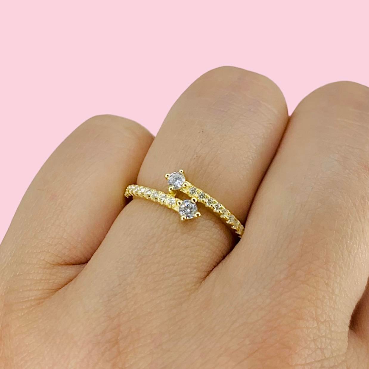 Anillo Encuentro con cubic Blanco de Plata Baño de Oro Gold
