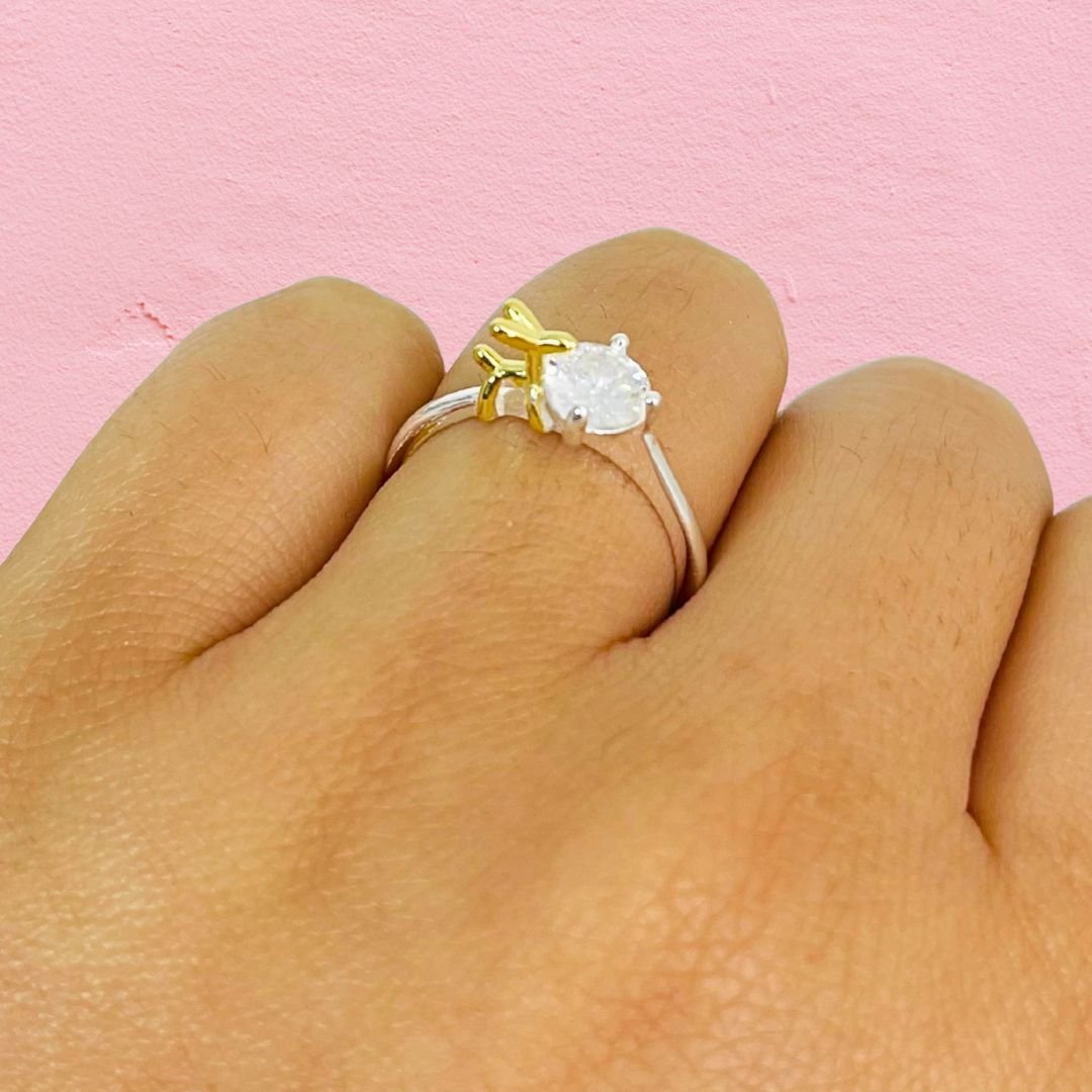 Anillo Perrito y Cubic Blanco de Plata y Oro