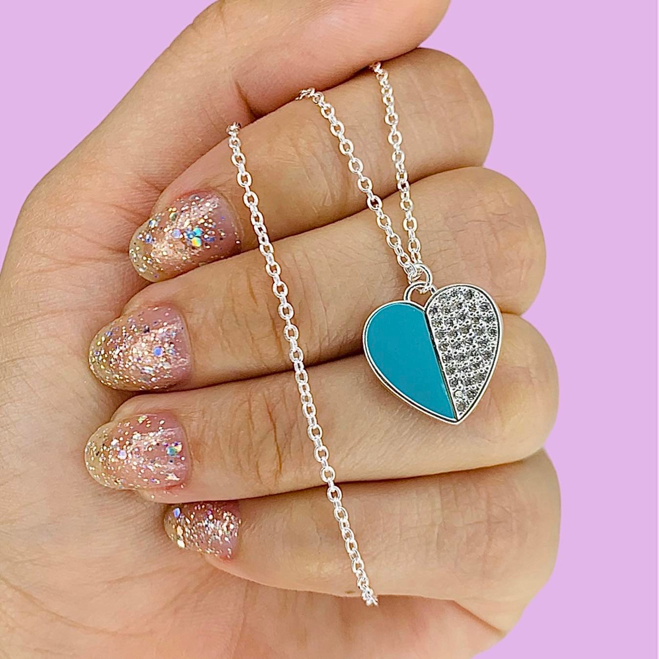 Conjunto Rolito con dije corazon esmaltado turquesa y cubic blanco de Plata 925