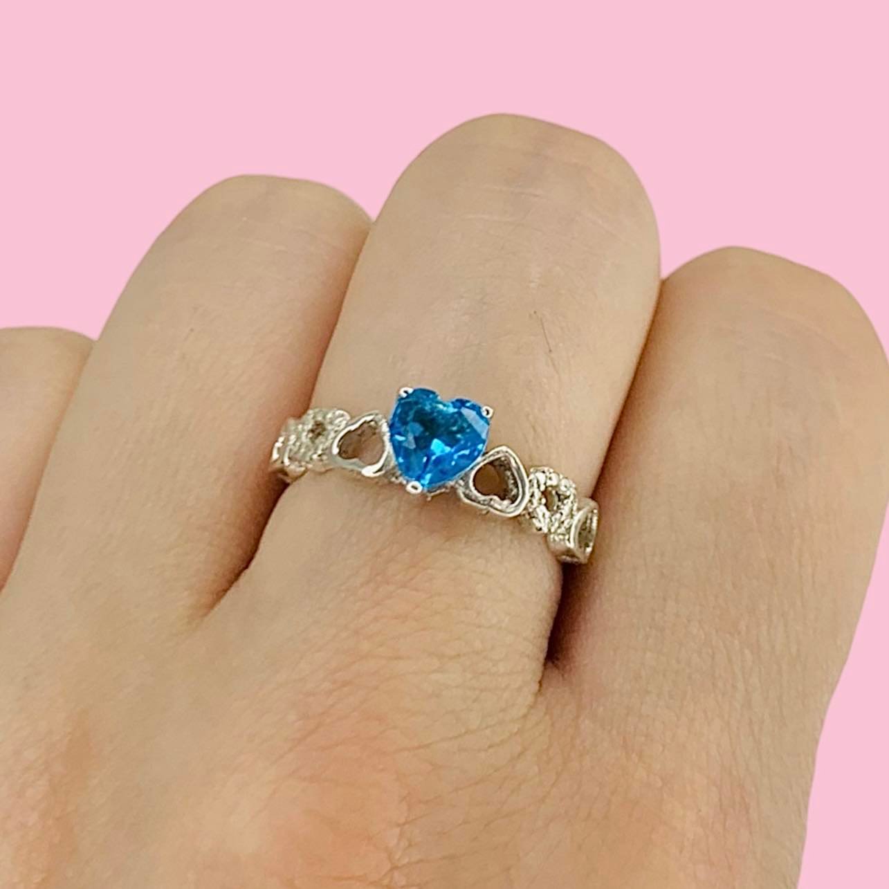 Anillo Enamorados con Cubic Corazon Aguamarina de Plata 925