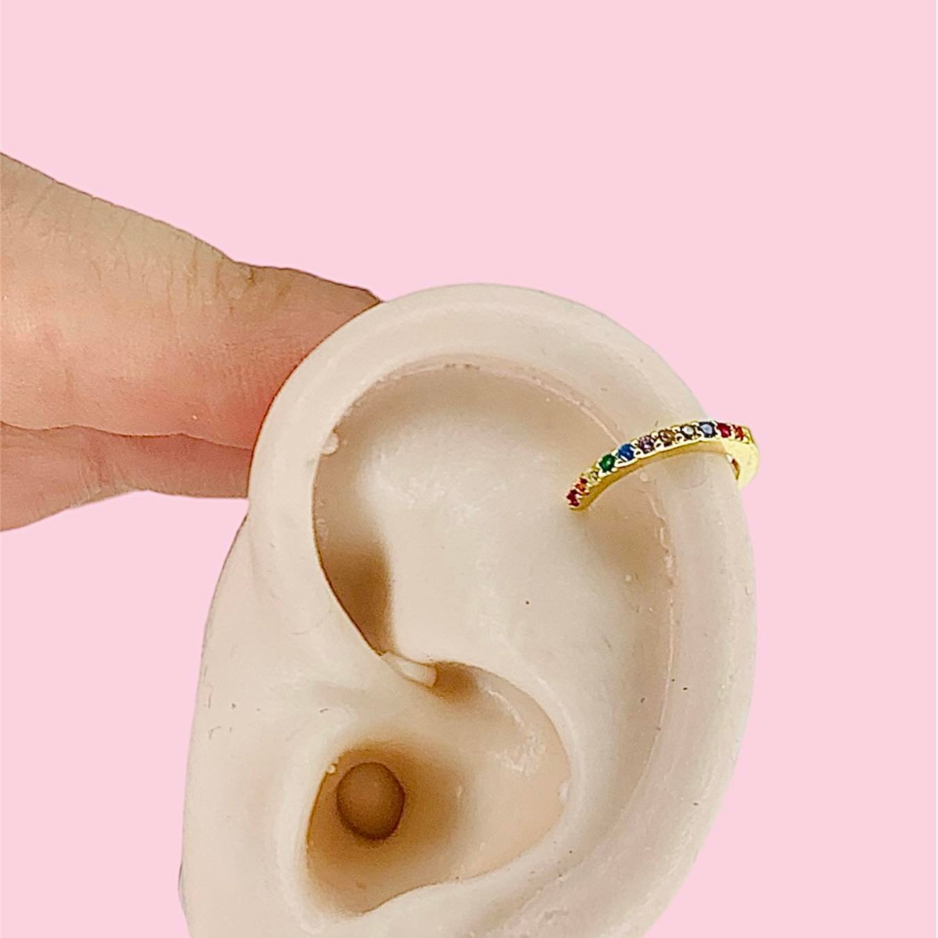 Arito Cuff medio sinfin con piedras multicolor de Plata con baño de Oro Gold