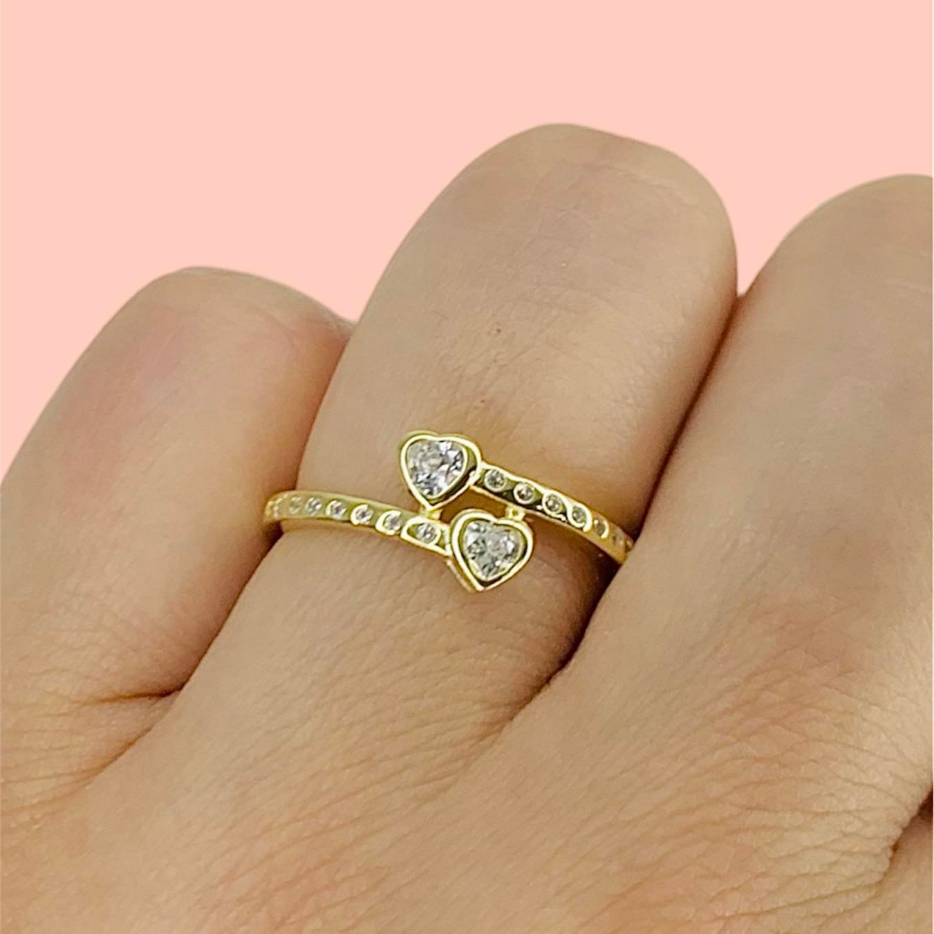 Anillo Corazon Doble de Plata y Baño de Oro Gold