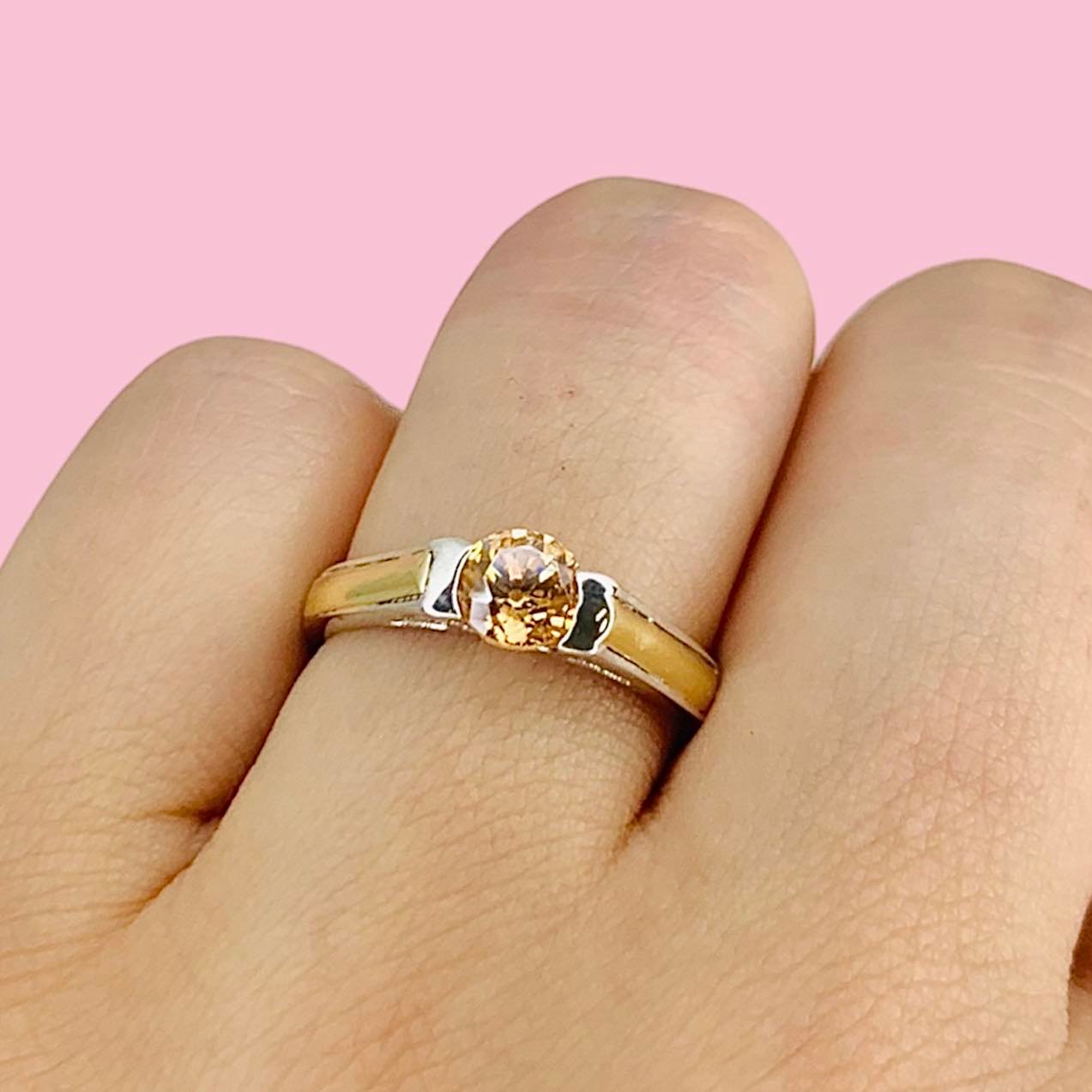 Anillo Solitario de Compromiso cubic Ambar de Plata y Oro