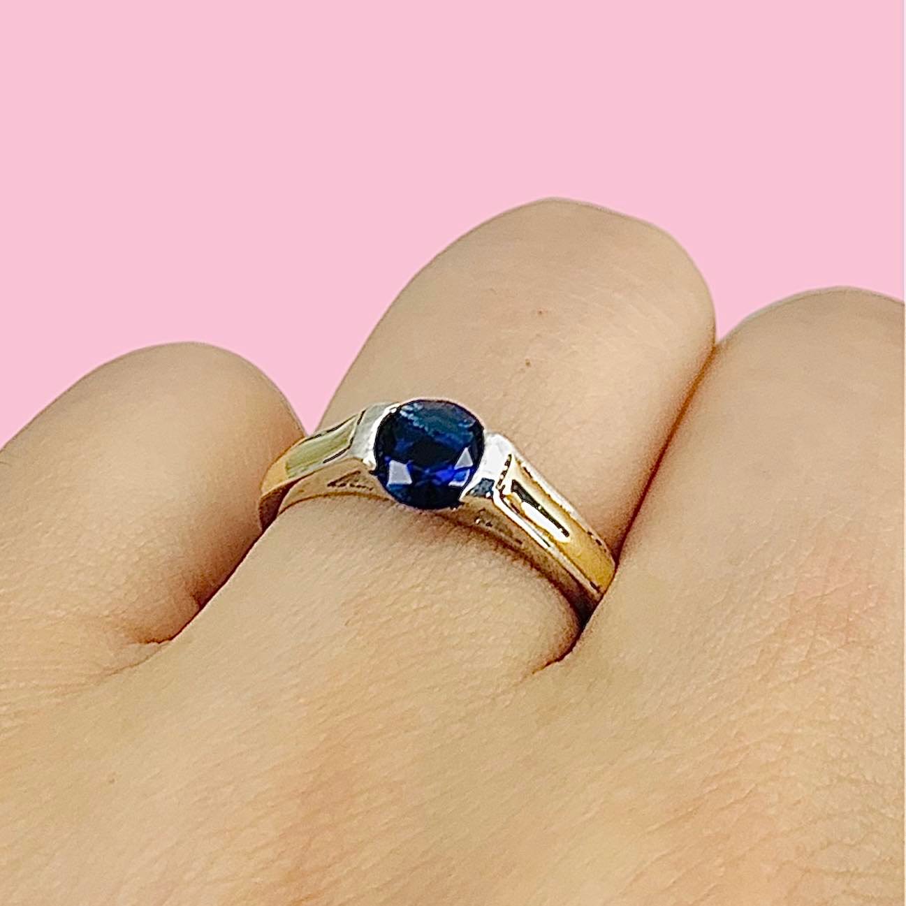 Anillo Solitario de Compromiso cubic Azul de Plata y Oro