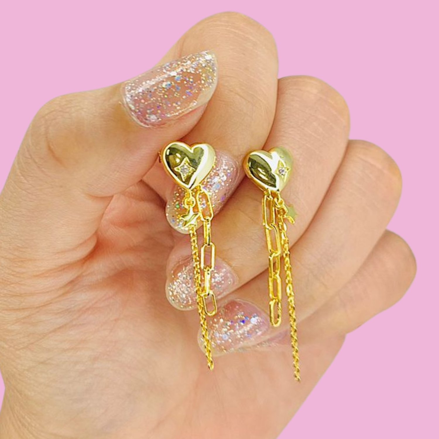 Artículo: AR 487-1Aros Corazon con Cadenitas