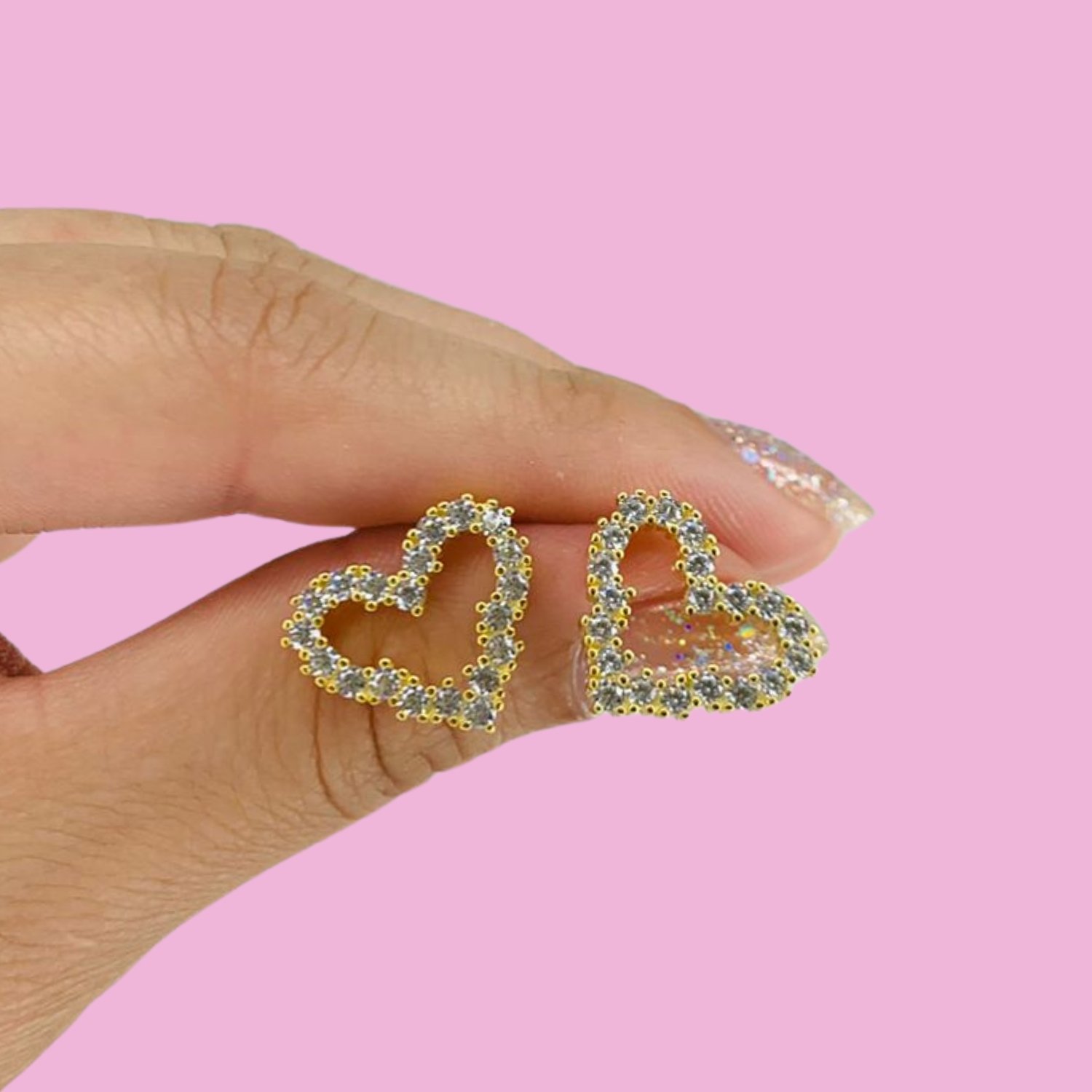 Aros Corazon con cubic blanco de Plata y Baño de Oro