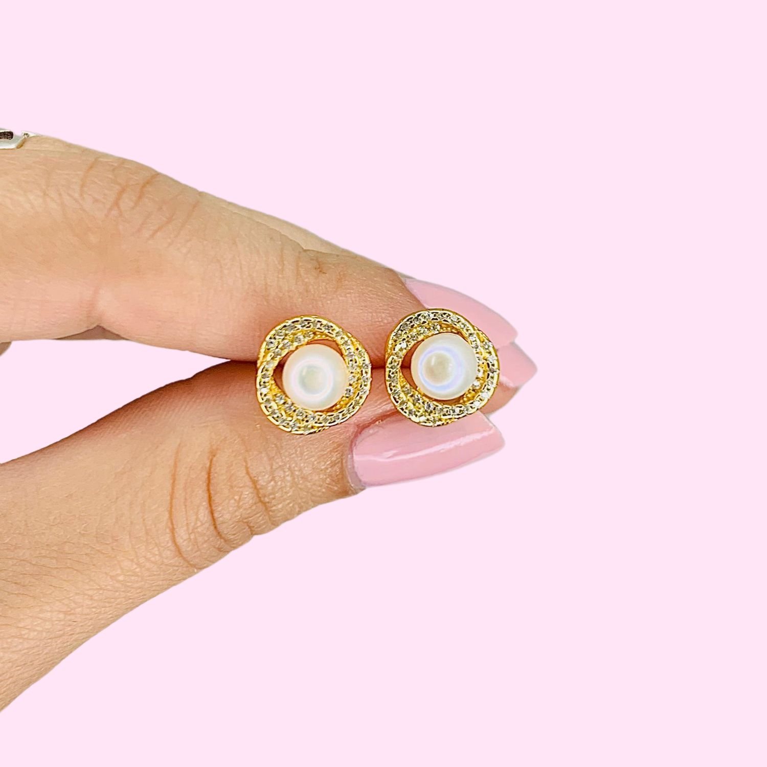 Aros Perla y aro triple con cubic blanco de Plata y Baño de Oro Gold