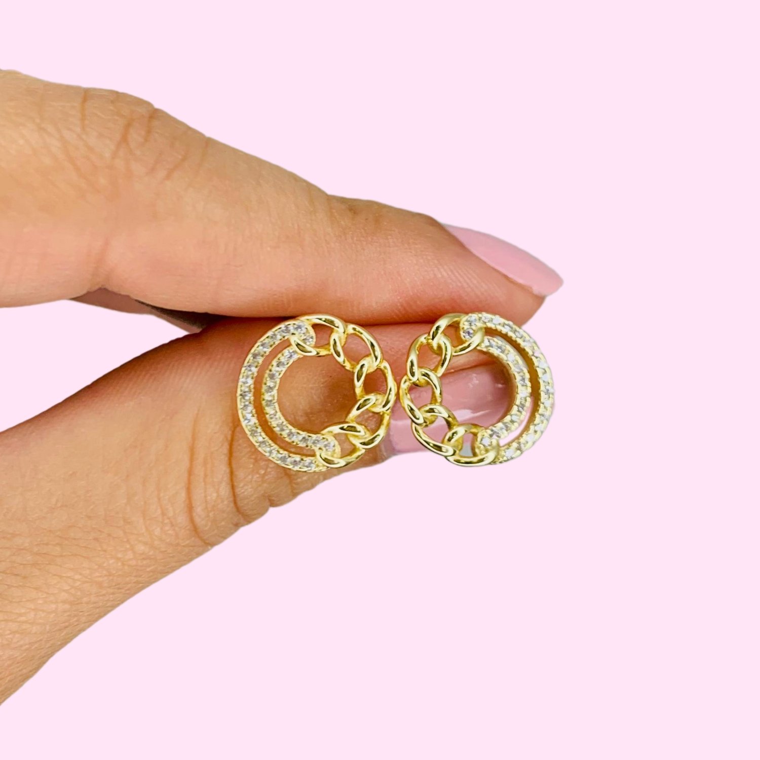 Aros Cadena fija con cubic blanco de Plata y Baño de Oro Gold