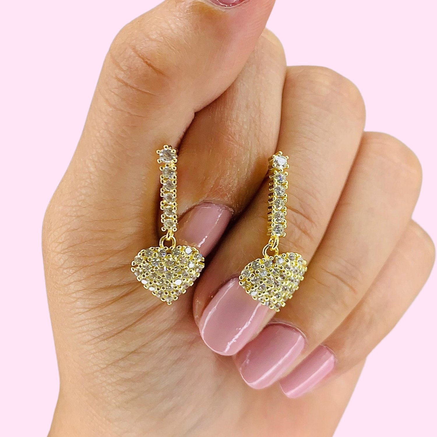 Aros corazon colgante con cubic blanco de Plata y Baño de Oro Gold