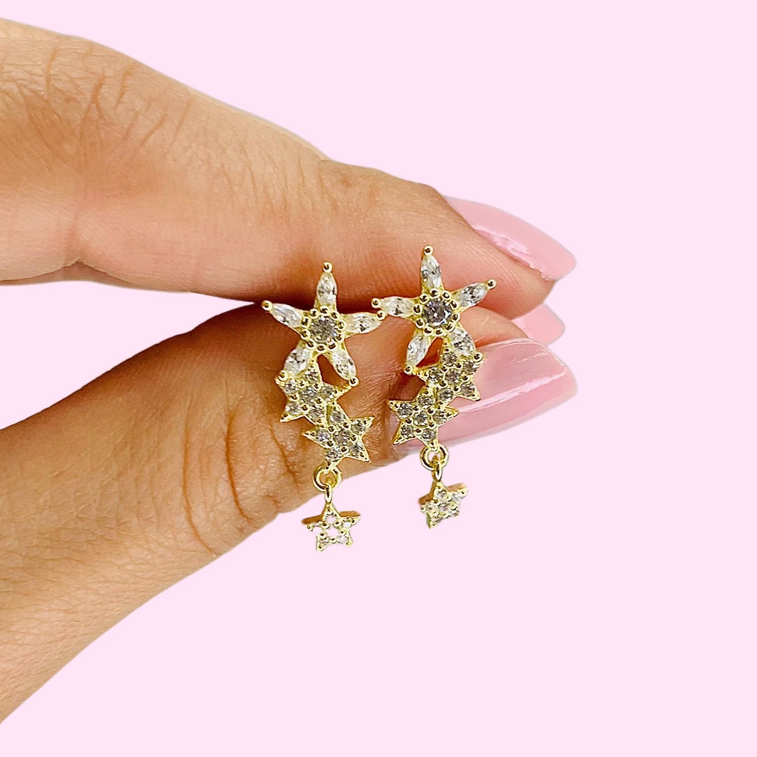 Aros Flor y Estrella con cubic blanco de Plata y Baño de Oro Gold