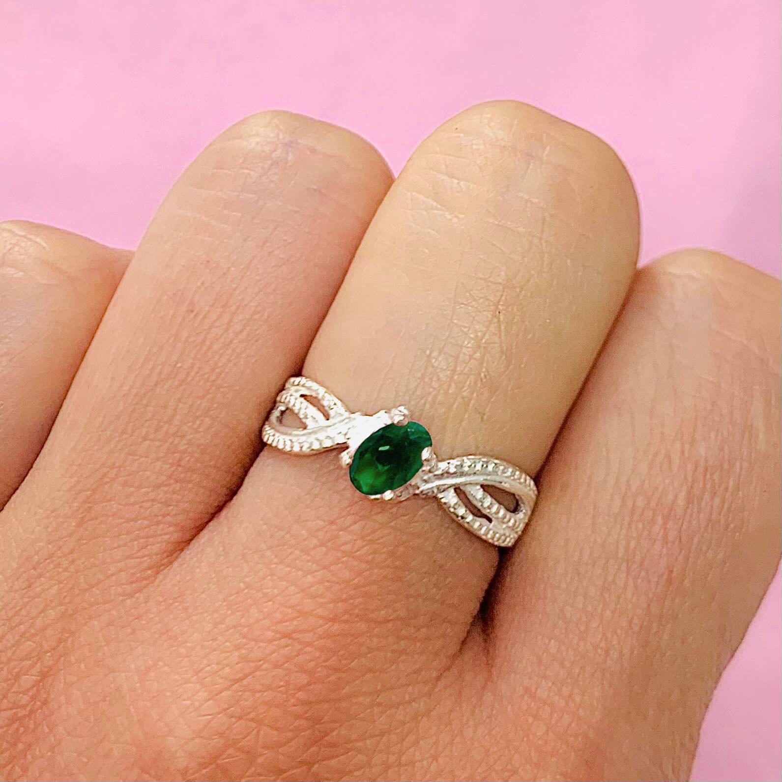 Anillo Solitario de Compromiso piedra oval Verde de Plata 925