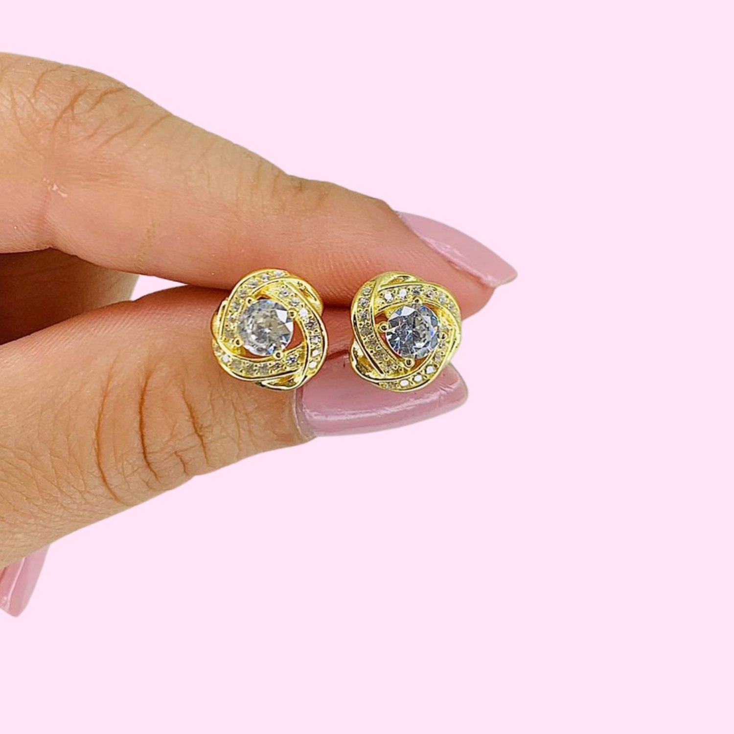 Aros Nudo con cubic blanco de Plata y Baño de Oro Gold