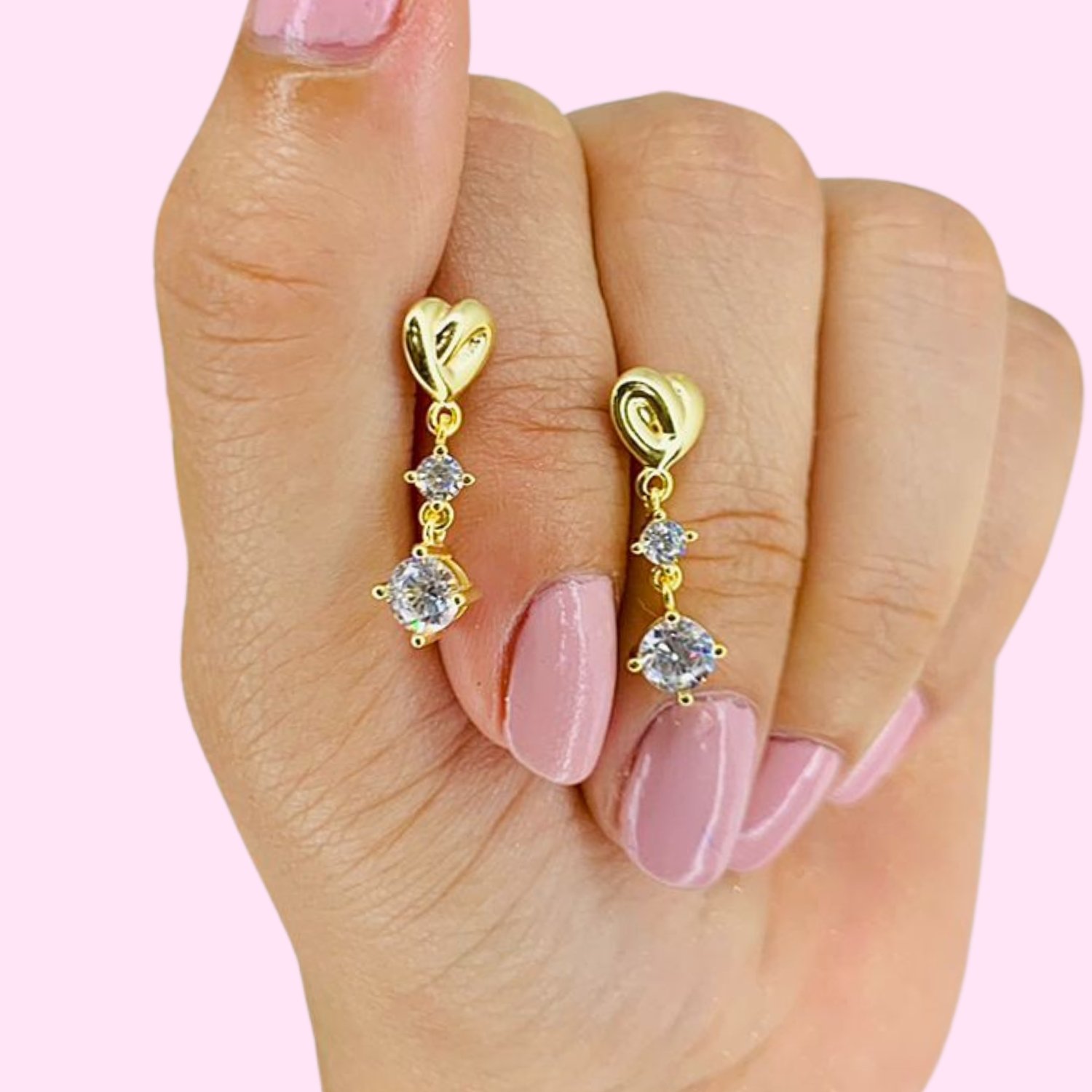 Aros Nudo Corazon con cubic blanco de Plata y Baño de Oro Gold