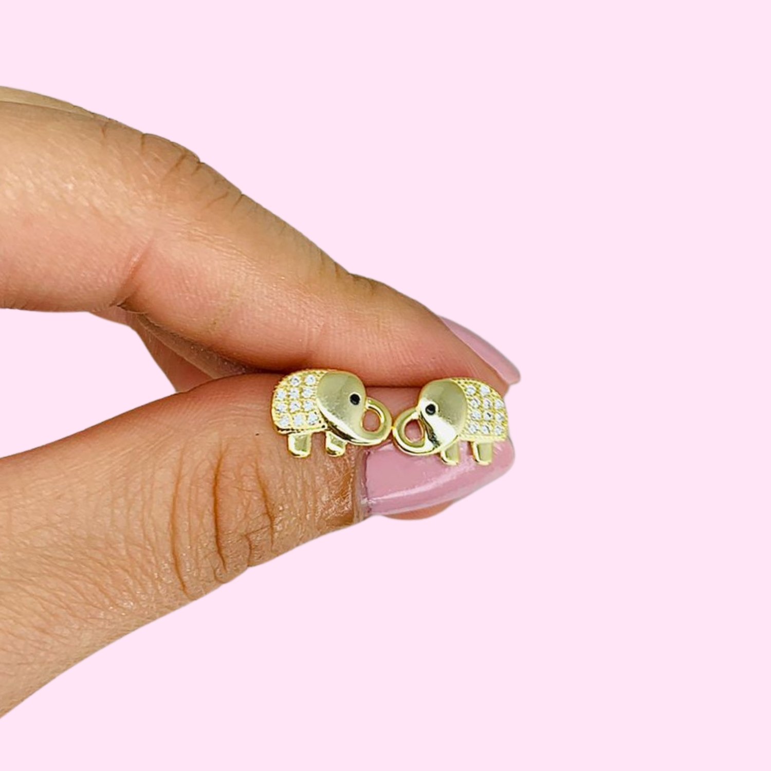 Aros Elefante Bebe con cubic blanco de Plata y Baño de Oro Gold