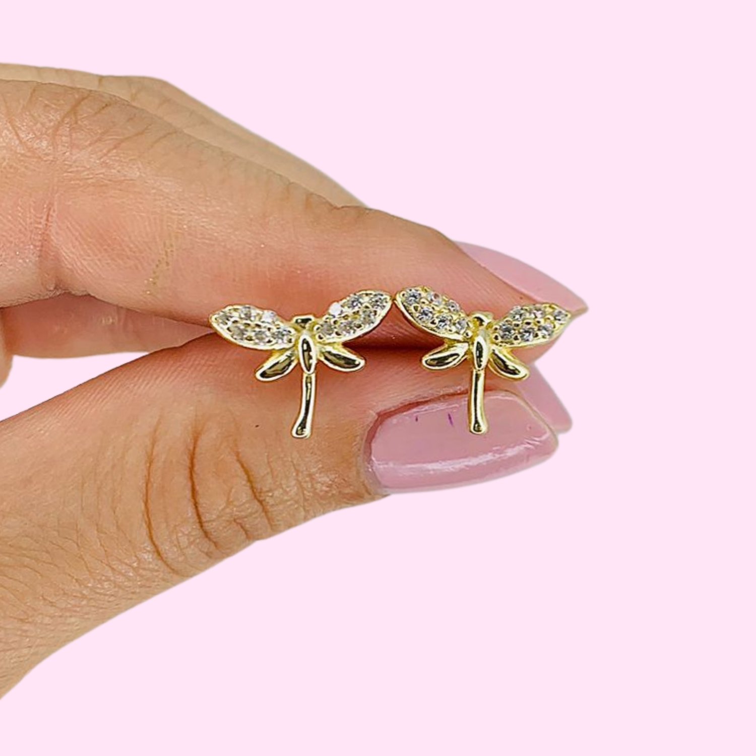 Aros Libelula con cubic blanco de Plata y Baño de Oro Gold