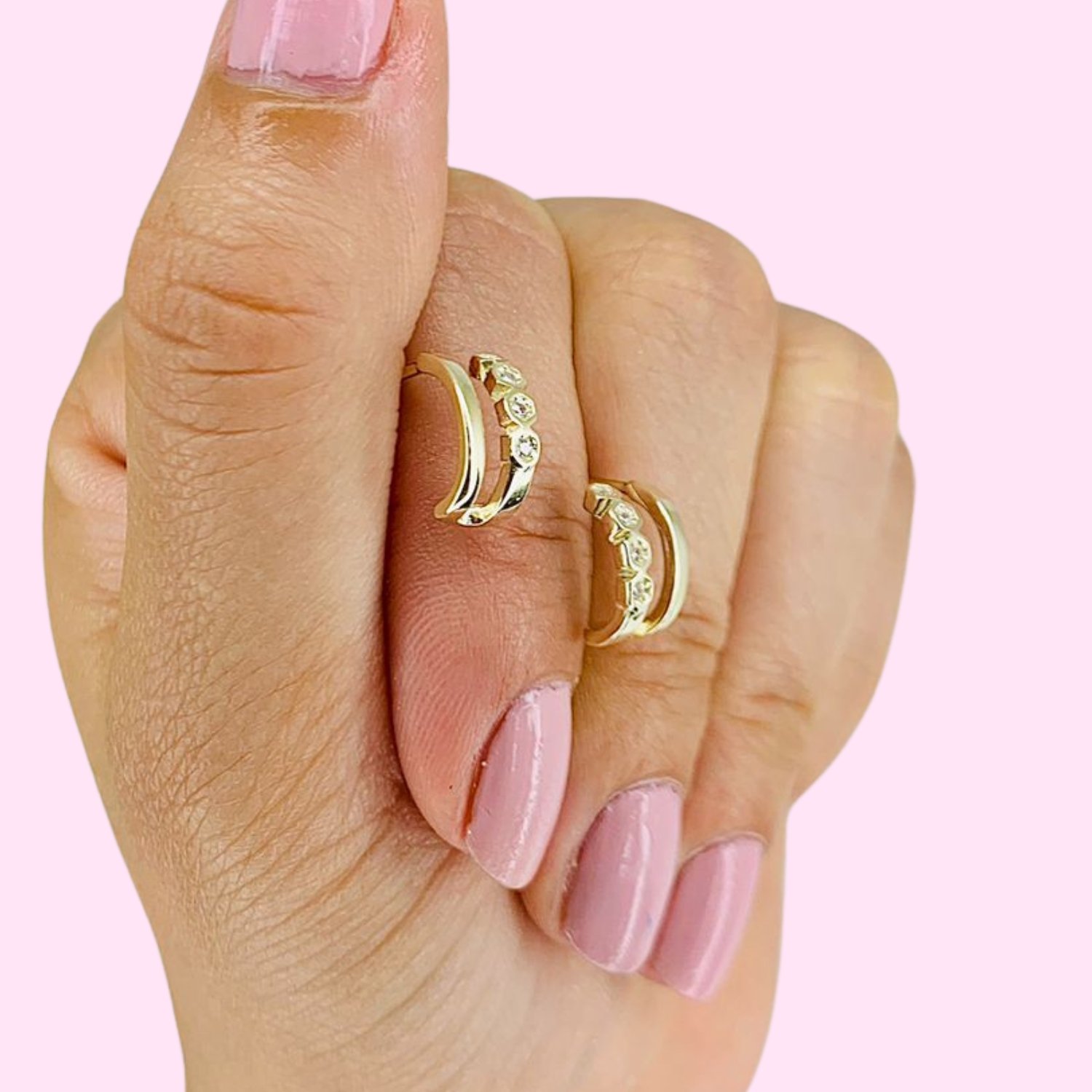 Aros Media caña con cubic blanco de Plata y Baño de Oro Gold