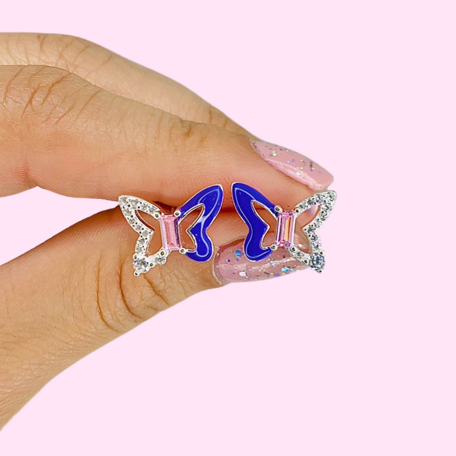 Aros Mariposa Esmaltado y cubic blanco de Plata 925