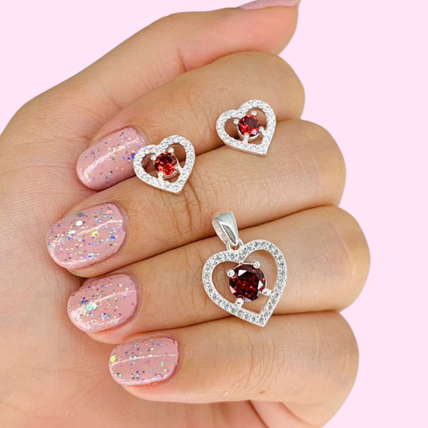 Conjunto Aros y dije corazon cubic Anaranjado de Plata 925