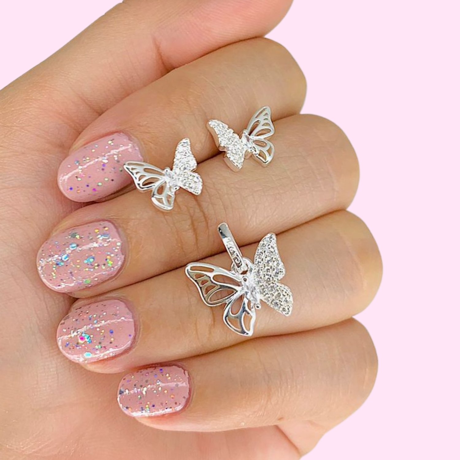 Artículo: KIT 131Conjunto Aros y dije Mariposa cubic blanco micropave