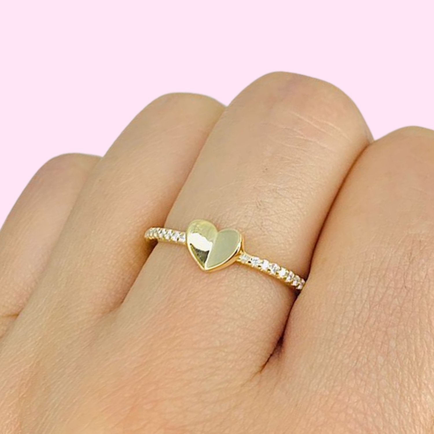 Anillo Medio sin fin corazon origami y cubic blanco de Plata y Baño de Oro GOLD