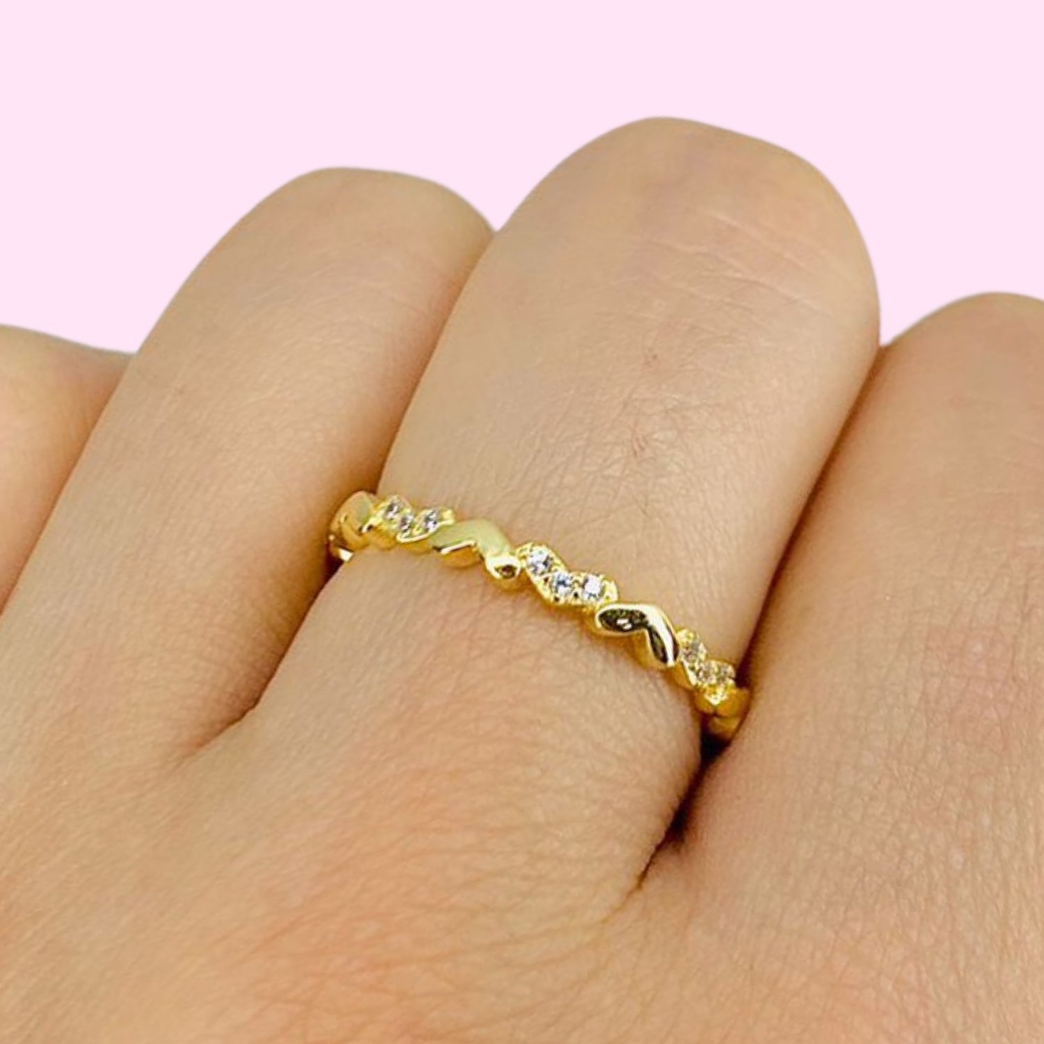 Anillo sin fin corazones mini con cubic blanco de Plata y Baño de Oro Gold