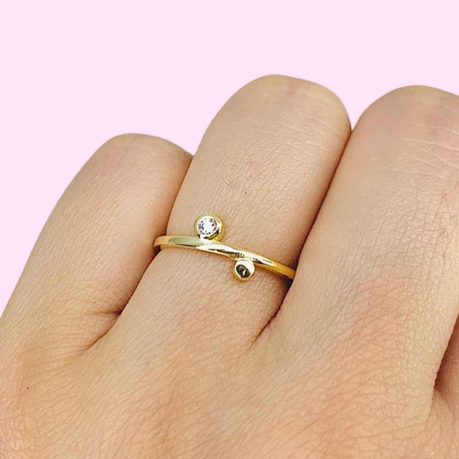Anillo Bolitas Espejo y cubic blanco de Plata y Baño de Oro