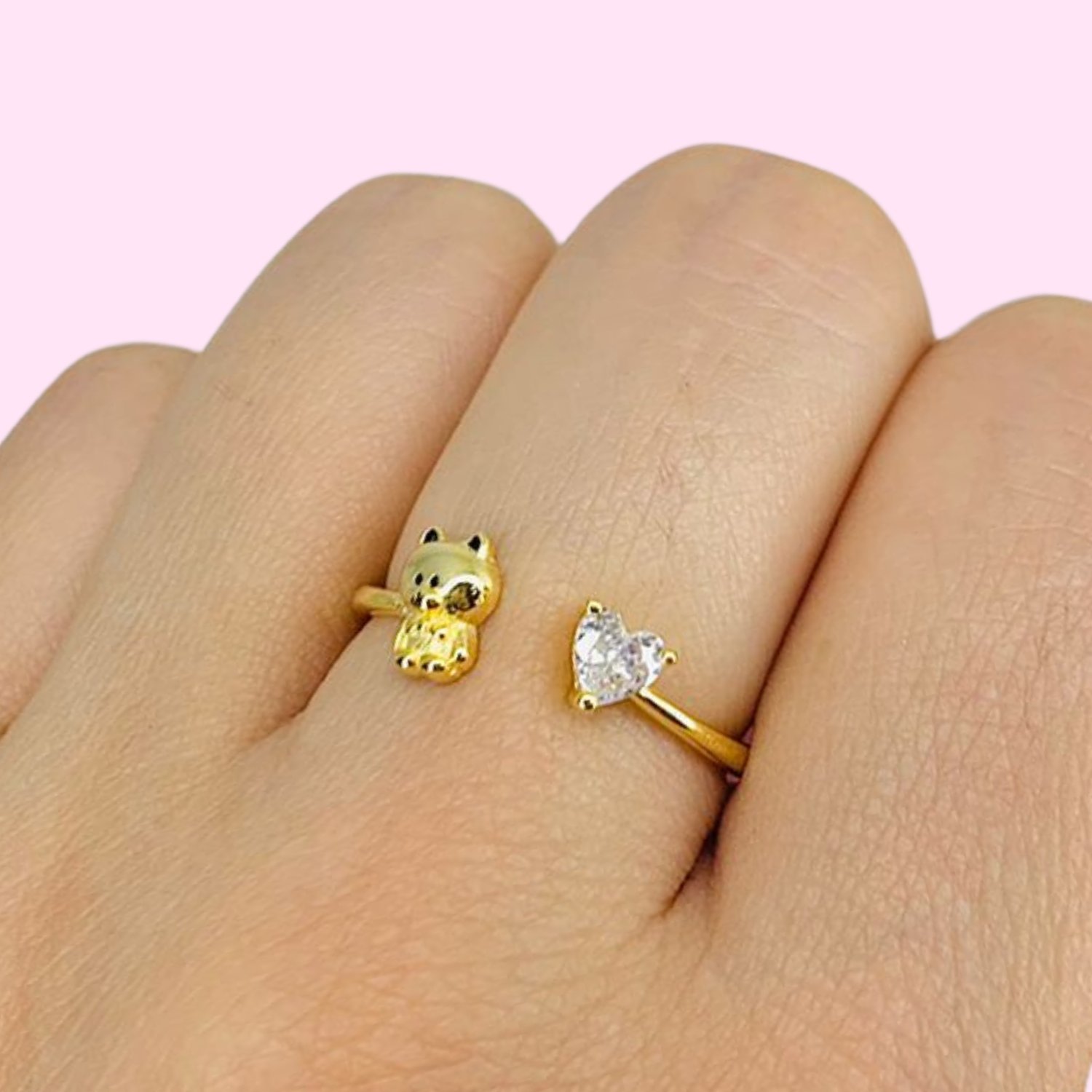 Anillo Osito Melosito con cubic corazon blanco de Plata y Baño de Oro