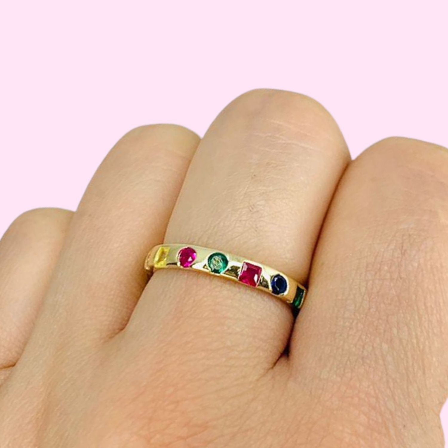 Artículo: AP 441-23Anillo sin fin con cubic redondo y cuadrado multicolor
