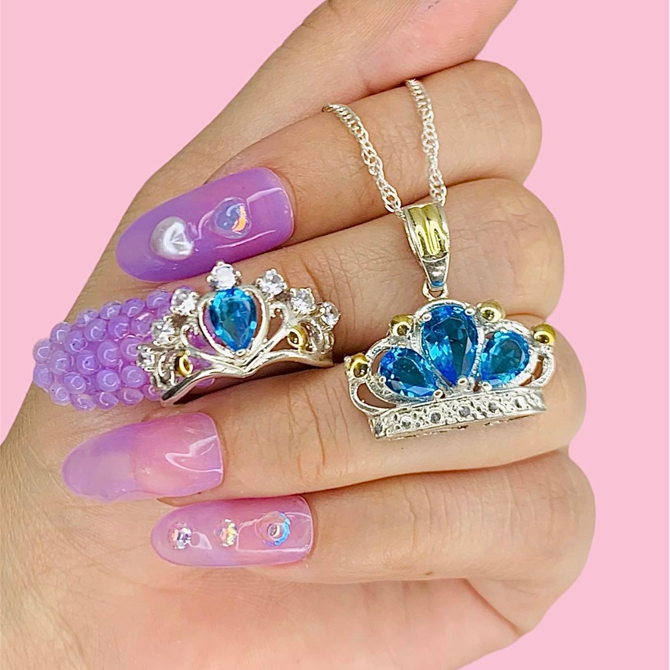 Artículo: KIT 133-2Conjunto Corona y Anillo cubic gota Celeste