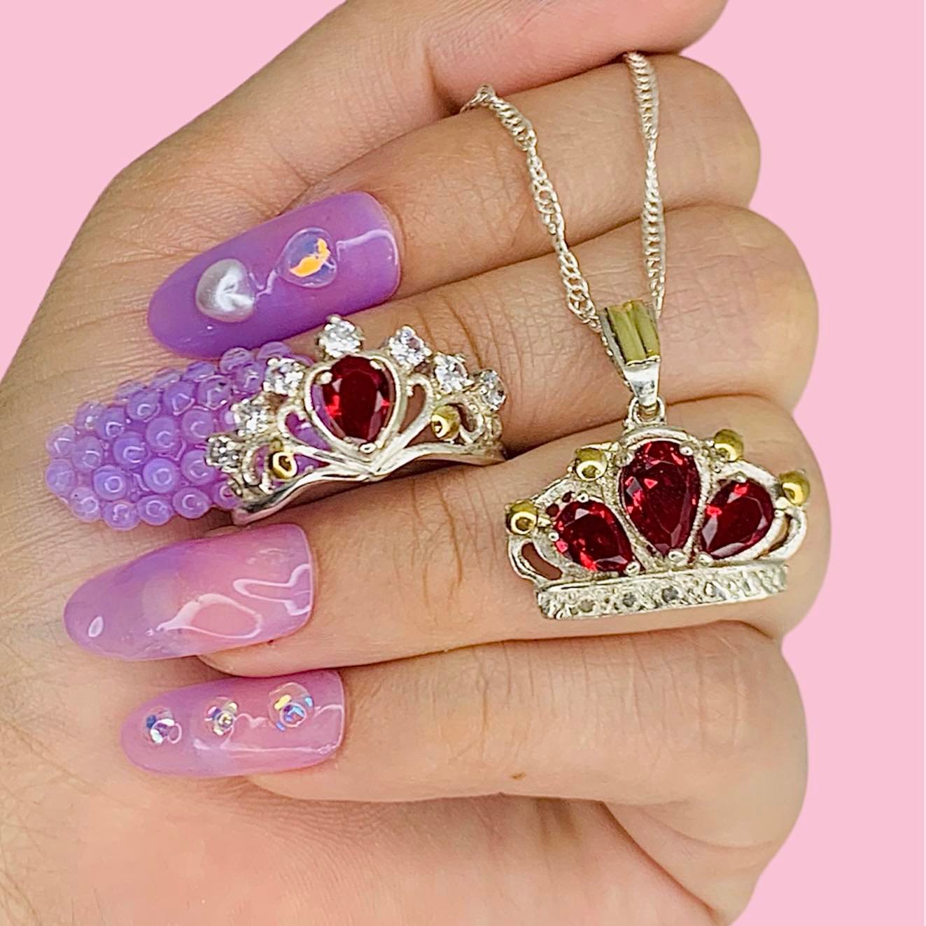 Artículo: KIT 133-3Conjunto Corona y Anillo cubic gota Rojo