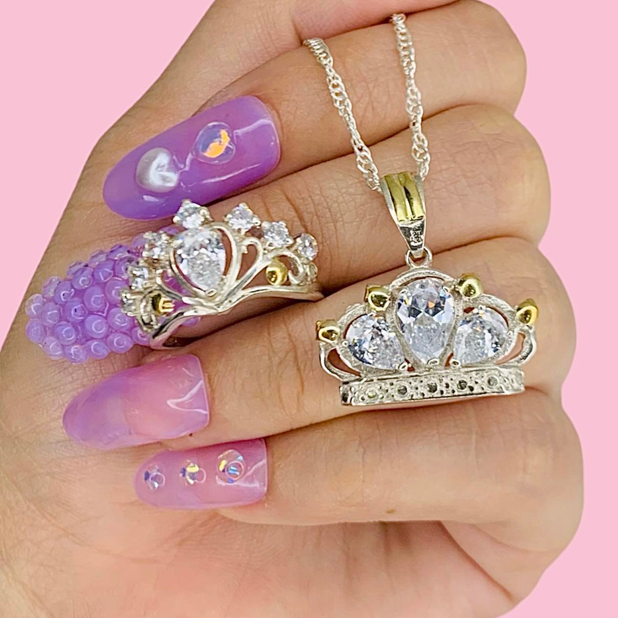 Artículo: KIT 133-4Conjunto Corona y Anillo cubic gota Blanco