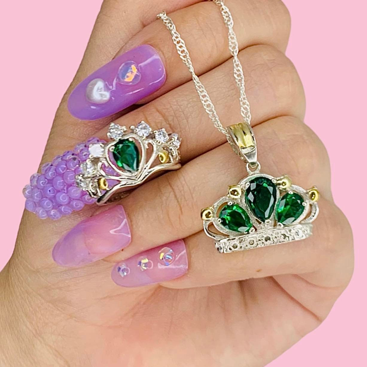 Artículo: KIT 133-5Conjunto Corona y Anillo cubic gota Verde